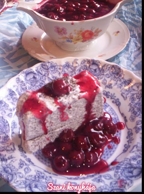 Mákkal megszórva, forró meggyöntettel tálaljuk.