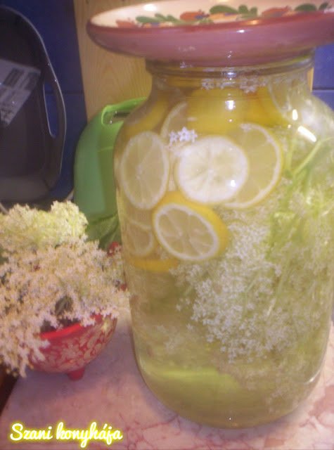 kb. 4 l víz (ez attól függ mennyi vizet szorít ki a citrom és a bodza)