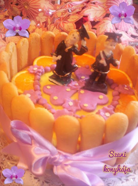 Ballagási köntösbe öltöztetett narancskrémes torta.
