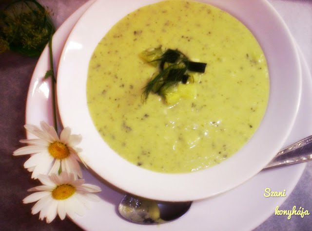 4 ek. cukkinit kiveszünk a díszítéshez, a többit botmixerrel péppé turmixoljuk.