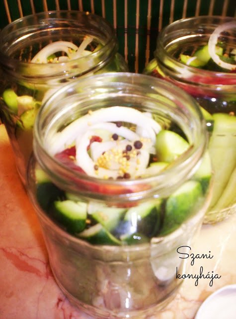 Amikor ismét felforrt, a levet az uborkákra öntjük és rátesszük az üvegek fedelét.