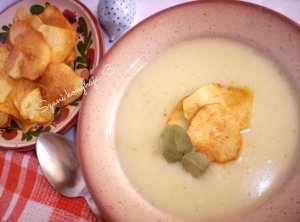 Ez egy zsiradék nélkül készített változata a burgonyakrémlevesnek, de ez nem is baj, hiszen a chips olajban sül, így legalább ellensúlyozzunk, az azzal bevitt kalóriát 🙂