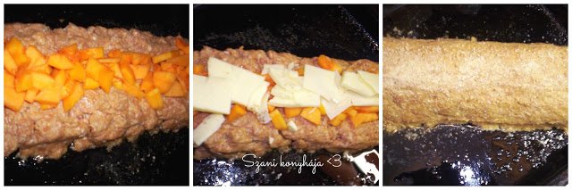 A tetejét hosszában kevés zsemlemorzsával megszórjuk.