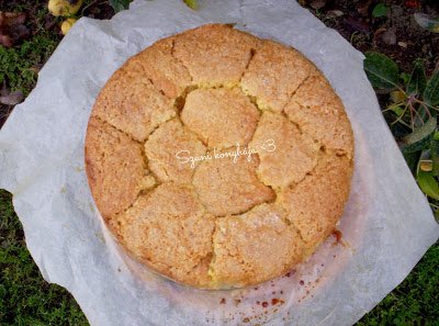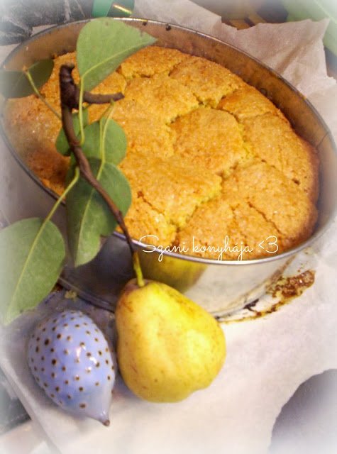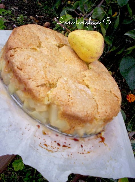 A körtéket megtisztítjuk, felkockázzuk és kivajazott jénaiba tesszük ( Én torta formában készítettem de ebben az esetben szivároghat, így aki ezt a megoldást választja, hozzám hasomlóan tegyen a forma alá sütéskor sütőpapírt vagy alufóliát)