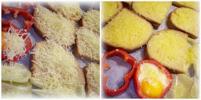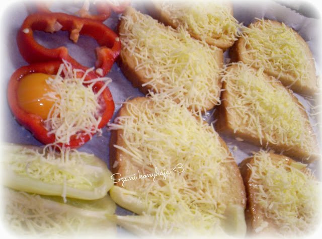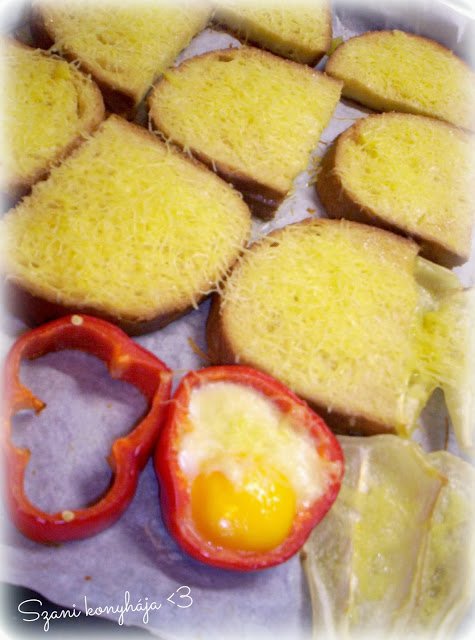 A kenyér tetején a sajt megolvad a tojás fehérje kifehéredik ez jelzi majd az elkészültüket.