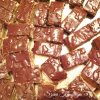 A maradék csokit a tészta tetejére csorgatjuk és villával vagy késsel márványosítjuk.