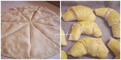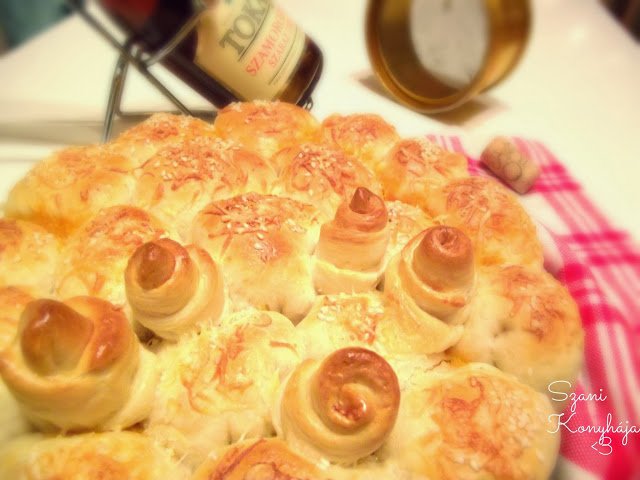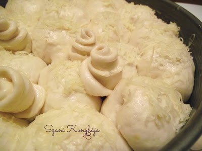 Amikor mind elkészült, lekenjük 1 tojás felvert sárgájával, megszórhatjuk szezámmal és további reszelt sajttal, majd legalább még 20 percig hagyjuk kelni, mielőtt sütni kezdjük.