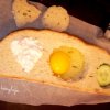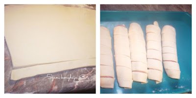 A cukros-fahéjas körtéket, egy sütőpapírral bélelt tepsire tesszük.