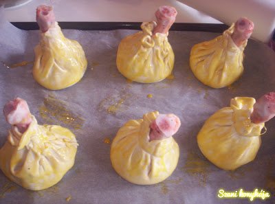 A tetején hagyott kis tészta csücsköt pedig kicsit megnyomkodjuk, szárra hasonlatosra formázva.