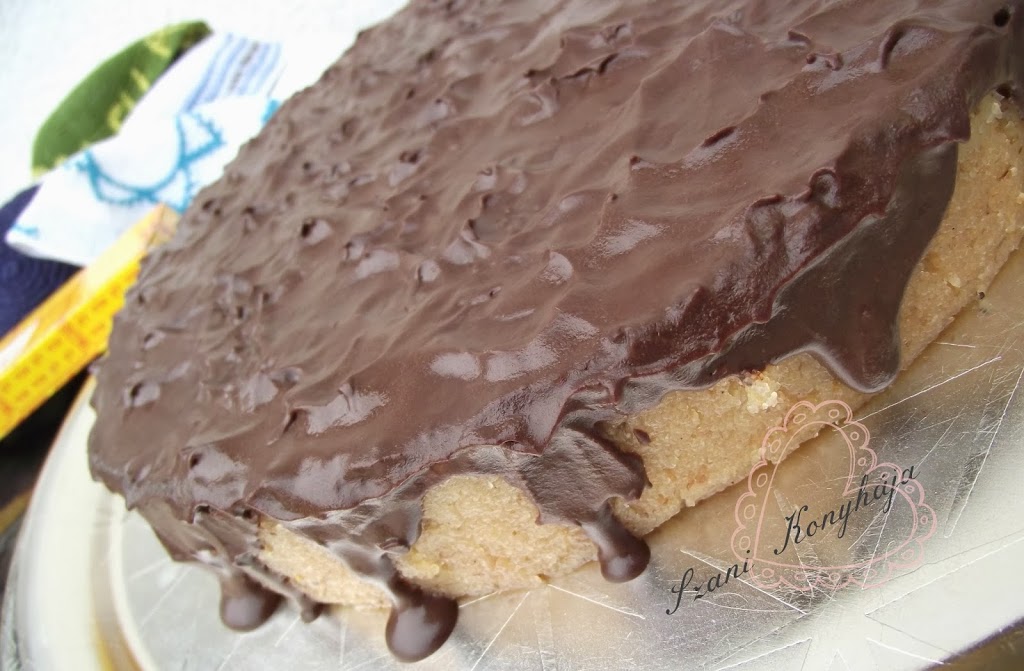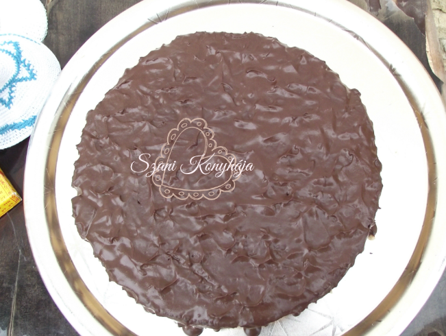 A halva megkoronázásaként, ezt a finom sűrű, csokis masszát a tetejére öntjük.